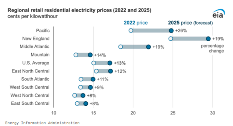 It is not news to anyone that prices are rising everywhere, including electricity costs. Across the country and close to home, utility providers are raising rates above historic averages and show no signs of slowing down anytime soon. In the next five years alone, US electricity demand is expected to increase an astonishing 15-16%. For context, for the last two decades, the annual increase in power demand has been less than 1%.